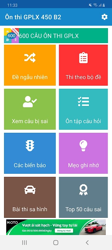 Ứng dụng gồm đầy đủ 450 câu hỏi dùng cho sát hạch, cấp giấy phép lái xe gplx cơ giới đường bộ giúp các bạn chuẩn bị thi bằng lái xe ô tô có thể ôn thi phần lý thuyết một cách nhanh chóng và hiệu quả nhất.