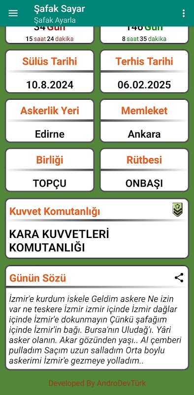 Safak Sayar² 2025, Soldier Day Counter; It is suitable for the New Military Service System.