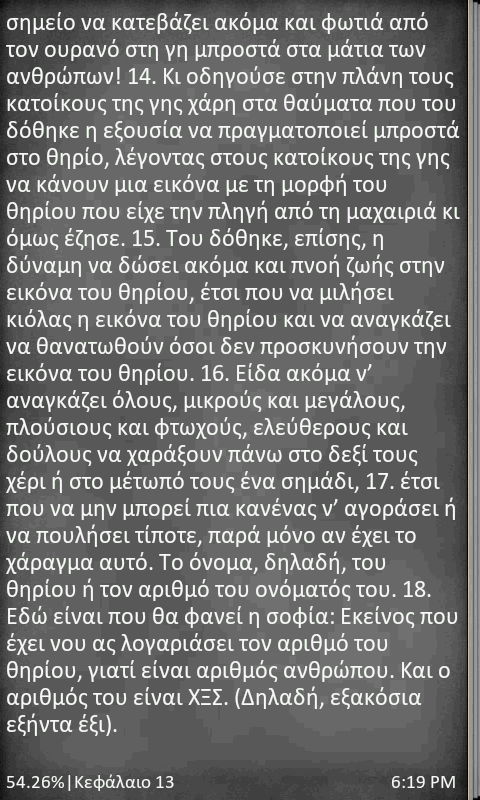 Η Αποκάλυψη του Ιωάννη σε μια ευκολοδιάβαστη μορφή ηλεκτρονικού βιβλίου (e-book) και γραμμένη σε απλά Ελληνικά για να μπορεί να διαβαστεί από όλους. Η αιώνια διαμάχη του καλού με το κακό, καταστροφές, πληγές, τιμωρία, επιβράβευση και νέα αρχή είναι τα στοιχεία που συνθέτουν ένα 'δυνατό' κείμενο, το οποίο αξίζει να διαβαστεί ανεξάρτητα από τα θρησκευτικά σας πιστεύω. Κάποιοι το βρίσκουν αμφιλεγόμενο, η αλήθεια είναι πως έχει τελείως διαφορετικό ύφος από την υπόλοιπη Καινή Διαθήκη. Χωρίς αμφιβολία, ένα ιδιαίτερα ενδιαφέρον κείμενο.
