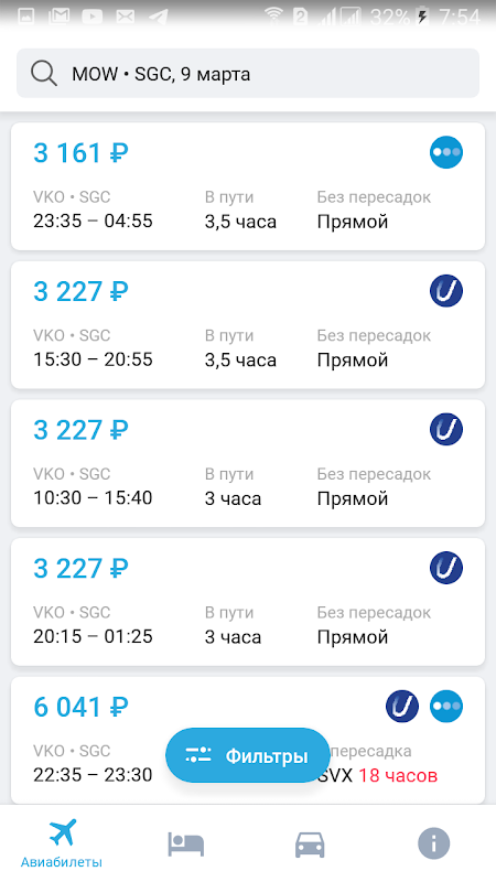- наличие продуманной системы фильтров, которые значительно облегчают поиск нужного варианта перелета;