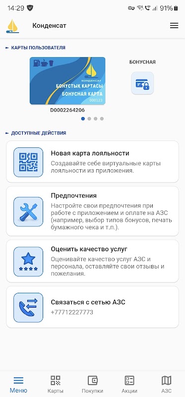 Join the loyalty program “It’s profitable with us” in the Condensat-AZS mobile application, accumulate and write off bonus points using the QR code on the screen of your phone. Find gas stations convenient for you on the map, stay up to date with discounts and promotions!