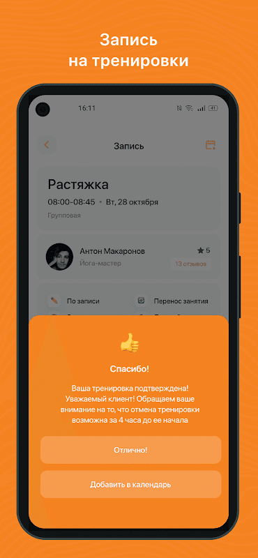 Mobile application for Wushu Academy clients. Subscription control, schedule, training reminders