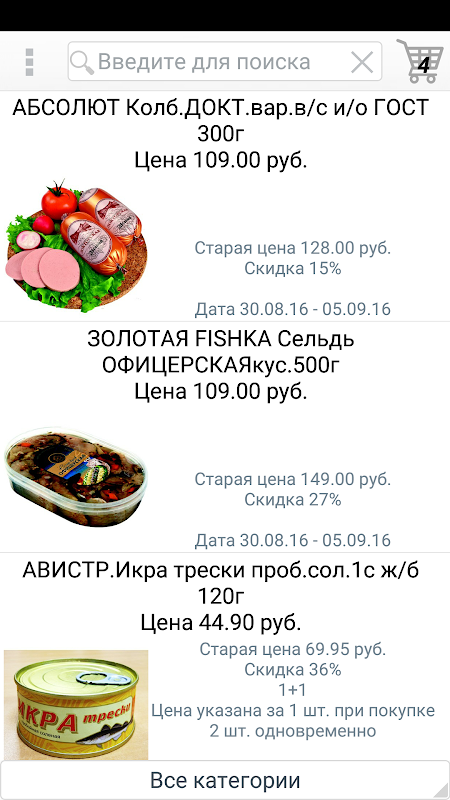 Selected products can be a long press to put in the basket (shopping list). In the shopping list, you can long press to mark the goods as purchased.