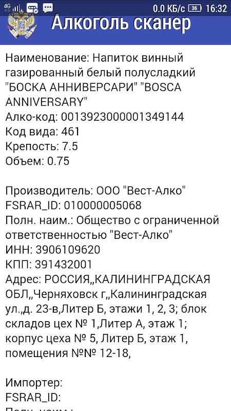 Приложение позволяет получить информацию зашифрованную в акцизной марке алкоголя.