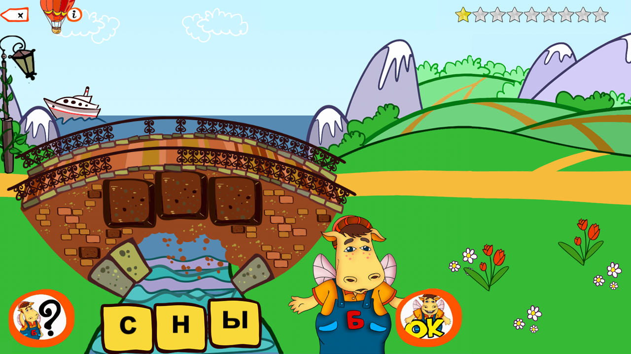 Fabulous bridge is constantly breaking down, and to fix it, you must collect puzzle cubes and form a word. Your child will not be bored, because for every word to be new scenery and characters, beautiful graphics and fun sound, and even a chance to play catch up and pedants, catch the ball. Complexity of the game varies from level to level: the bridge on the first level of the three dice, but the third - five.