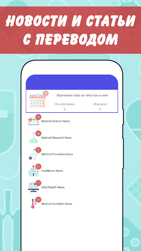 You can add your own words with examples and create separate dictionaries, including for any topic. It will help you learn medical English dynamically.