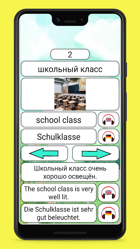 Learning English and German has never been so easy - memorize words in two languages at once, on one screen.