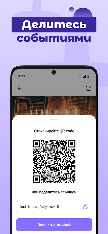 Create meetings, concerts, master classes, sports and cultural events. Invite friends via a link or QR code and manage your schedule in a convenient calendar.