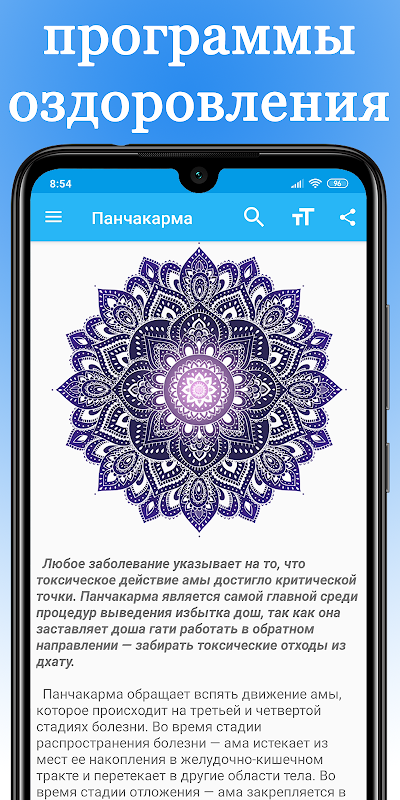 An offline guide describing the basic principles of Ayurveda, products, their qualities and compatibility. It contains information that is more than 5000 years old about the development of diseases, treatment methods and ways to maintain health.