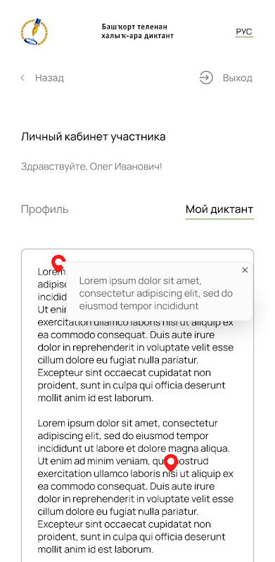 This application is intended for writing a dictation both in the platform itself and by uploading photo / scanned copies of a handwritten dictation, as well as checking the work by experts and grading the work.