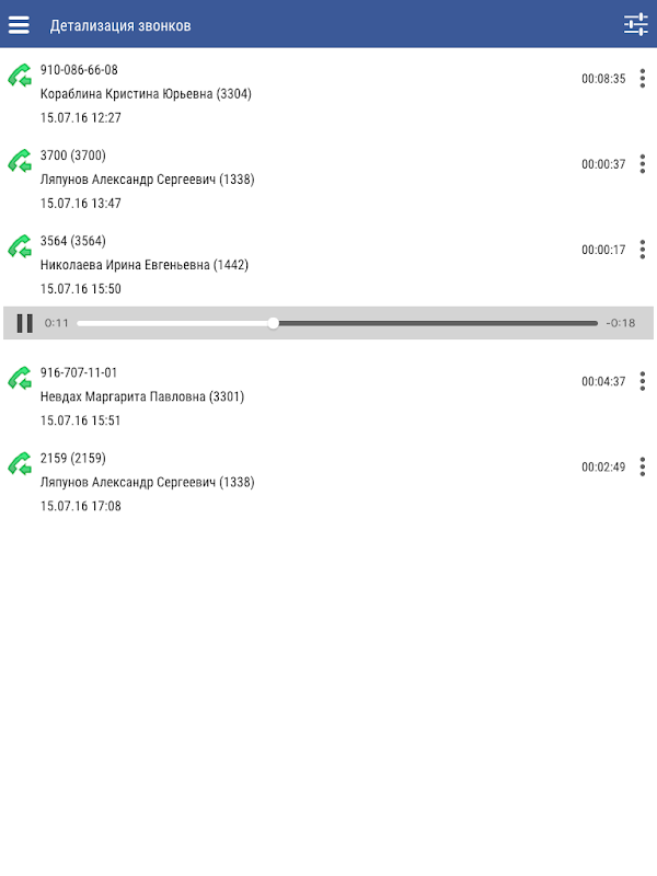 With the app BIT.Analitika PBX you are no longer tied to your work computer. Listen to the recording of calls and get detailed information on all incoming and outgoing calls of the company, while outside of the office!