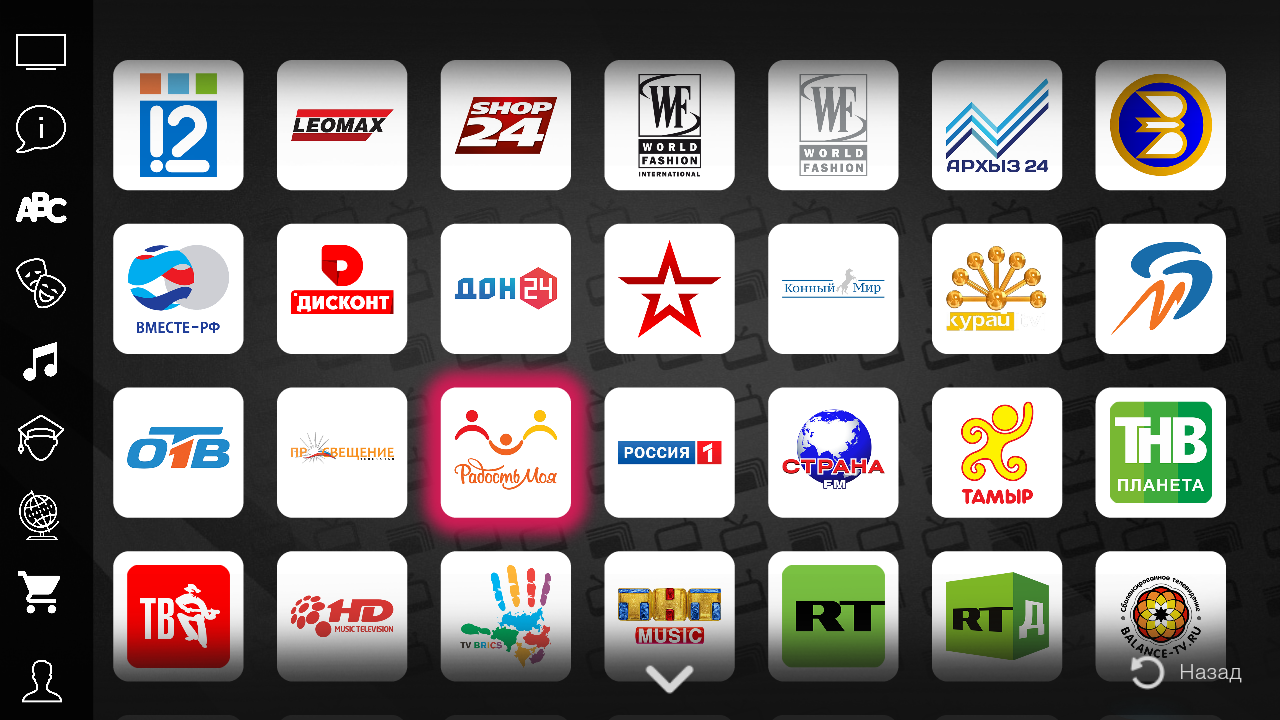 The most interesting Russian television channels! And the list of TV channels is constantly updated. Both national and regional TV channels are available.