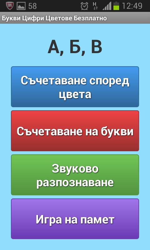 Безплатна игра за деца, която помага за разпознаване на български букви, български цифри и български цветове