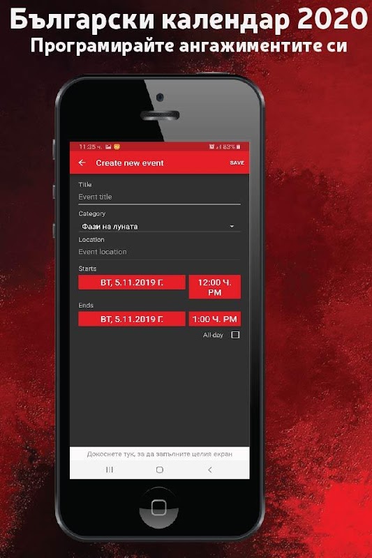 Новото приложение Български календар 2020, намери всички празници, седмици и специални дати в този календар 2020 български (почивни дни 2020), полезно и практично средство за информиране с този календар 2020 (2020 календар) вече е налице в магазина за използване на мобилни устройства с Android.