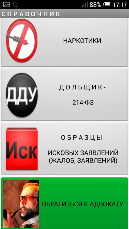 This application is the main application of the project "Your Lawyer", as it combines all the other thematic "lawyer" applications that have a direct communication service with a lawyer.