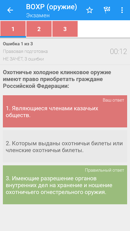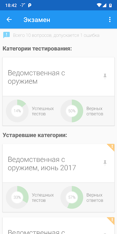 - режим "Обучение", который позволяет поэтапно изучить все вопросы выбранной категории