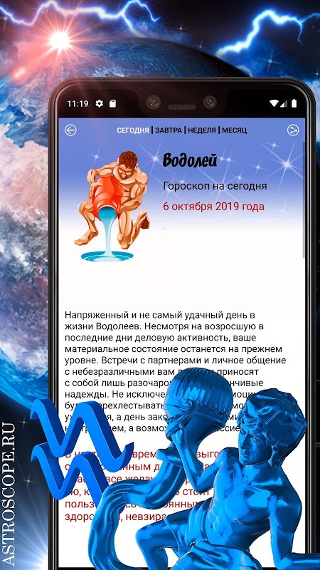 Daily horoscope Aquarius - functional and easy-to-use application will greatly facilitate the life of all representatives of this zodiacal constellation. This mobile application specially for Aquarius was developed and published by the astrological portal Astroscope.RU. You can easily plan your every day, having at hand detailed forecasts for any period of interest to you.