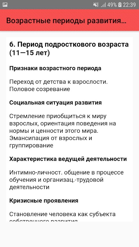 - Старший школьный возраст или ранняя юность (15—17 лет)