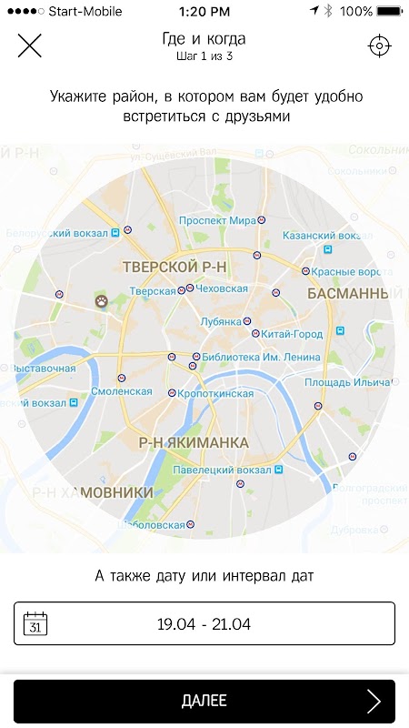С нашим приложением Вы легко сможете выбрать интересные мероприятия для встречи в нужном для вас месте, а также задать интервал дат, чтобы у друзей была возможность выбора. После этого Вы составляете список мест и приглашаете друзей для совместного голосования, куда пойти.