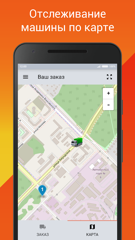 Ordering through the application can be made by cash, credit card, or with a corporate account (requires registration of the contract). The process of execution of the order can be tracked in the annex, the movement of the vehicle is displayed on the map (if available GLONASS gps devices in the car).