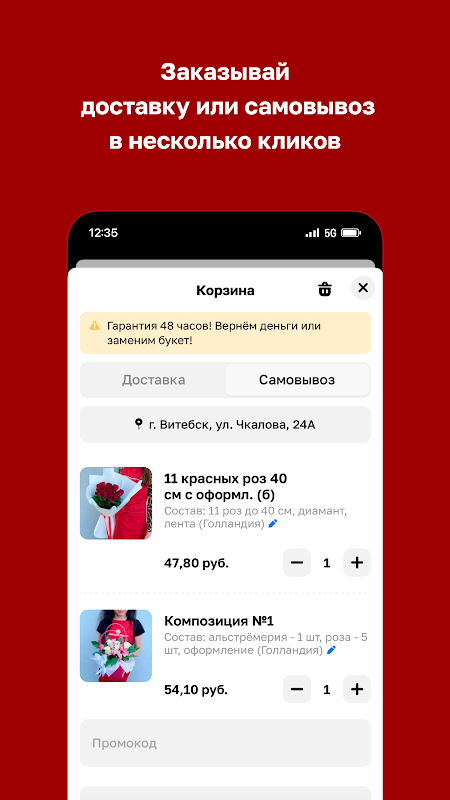 Our application offers flowers and bouquets for any occasion, be it a romantic evening, birthday, wedding or just to express gratitude.