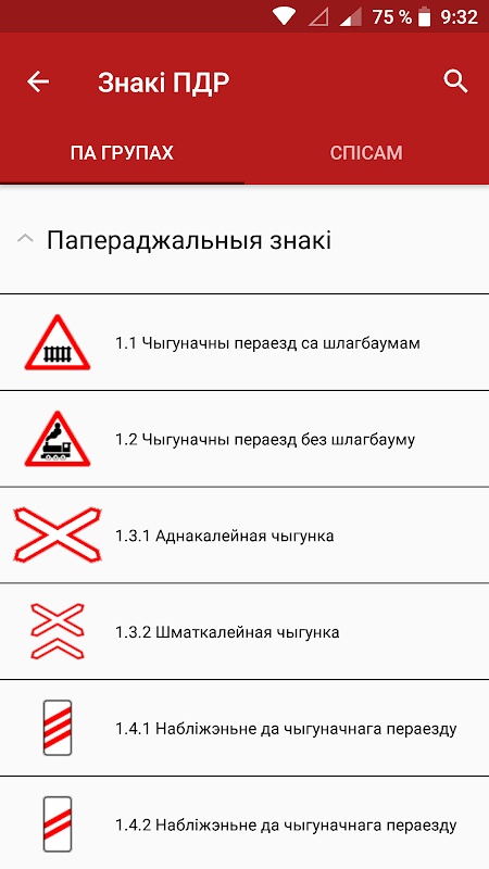 • Useful guide. It contains all the existing road signs of Belarus, divided into 7 categories: warning signs, priority signs, etc. In addition to the image and name of the sign in the manual there is a brief description;