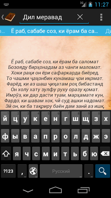 This application contains the Diwan (collection of poems) of the famous Persian non-change Poet Khoja Shamsiddin Muhammad Hafizi Shirazi (Farsi: خواجه شمسالدین محمد حافظ شیرازی). His complete works are considered a wing of Persian literature and can be found in the homes of most people in Iran, Tajikistan and Afghanistan, who learn his poems by heart and use them as proverbs and sayings to this day. His life and poems have been the subject of numerous analyzes, commentaries and interpretations, influencing the post-fourteenth century Persian writing more than any other author.