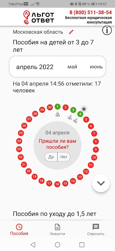 If you receive child benefits, select your region and mark on the circular calendar the date when you received benefits in the current month, see also when payments began in your region, and how many people have already received them.