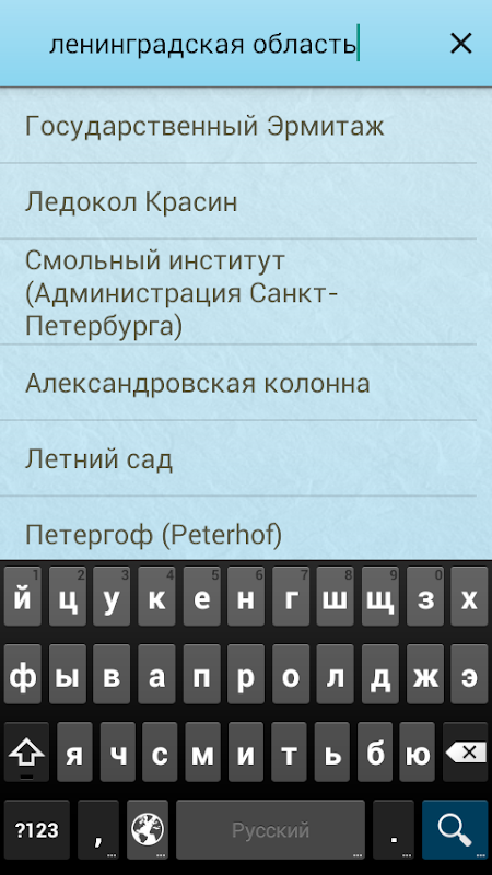 При желании можно найти все достопримечательности по областям или городам, достаточно в поиске набрать, например Москва, Санкт-Петербург.