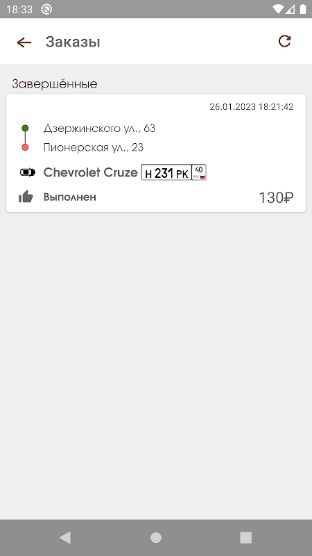 Order status information is constantly updated and allows you to plan your actions. The application displays the driver's name, brand, number and location of the car on the map, time to arrival. If you need to contact the driver, you can call him or write in the chat.