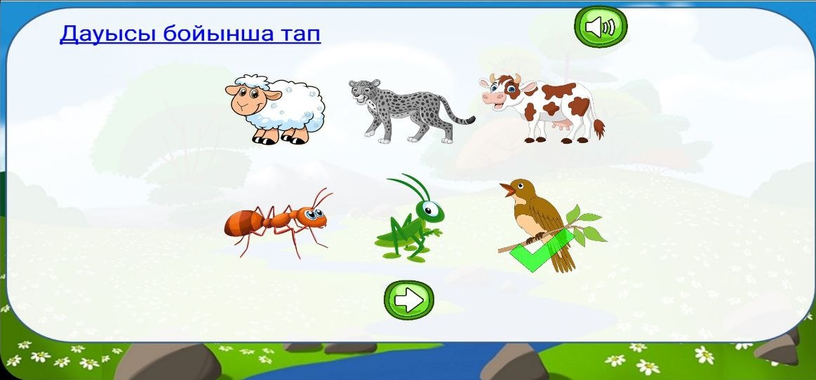2. Dybysy boyinsha tap. Screen zhogargy zhagynda kөrsetilgen batyrmany baskanda zhanuarlar әleminin tөrt okilіnіn kaysysynyn dybysy estilgenin taboo kerek.