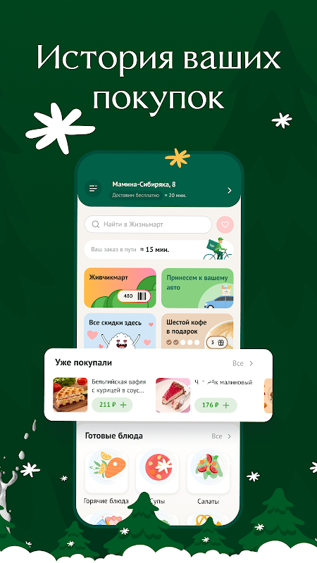 In the application, you can track the availability of goods in all Lifemart stores and order delivery or pickup. We deliver freshly brewed coffee, delicious pastries and inexpensive ready meals.