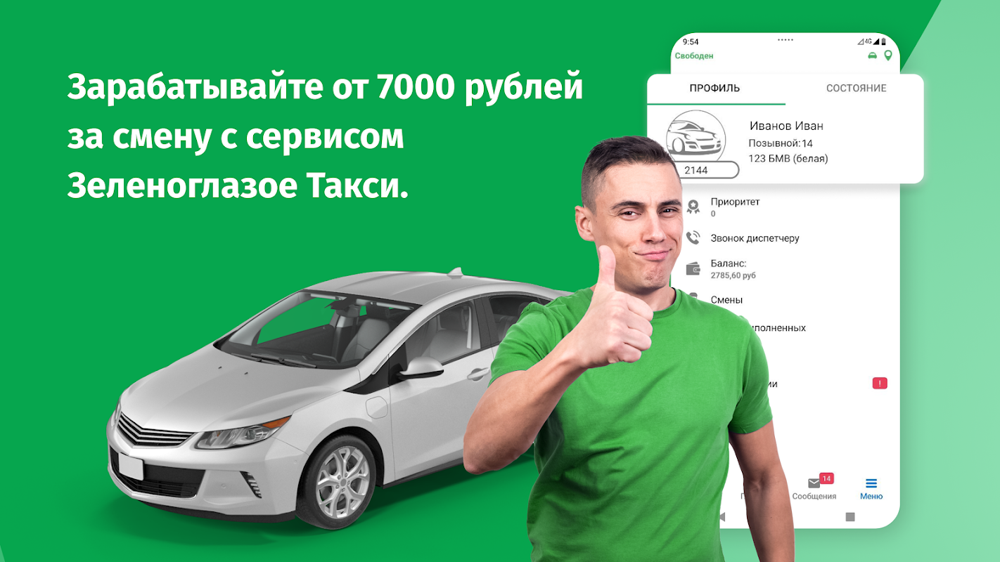 Work as a driver at Green-Eyed Taxi. Earn from 7,000 rubles per shift.