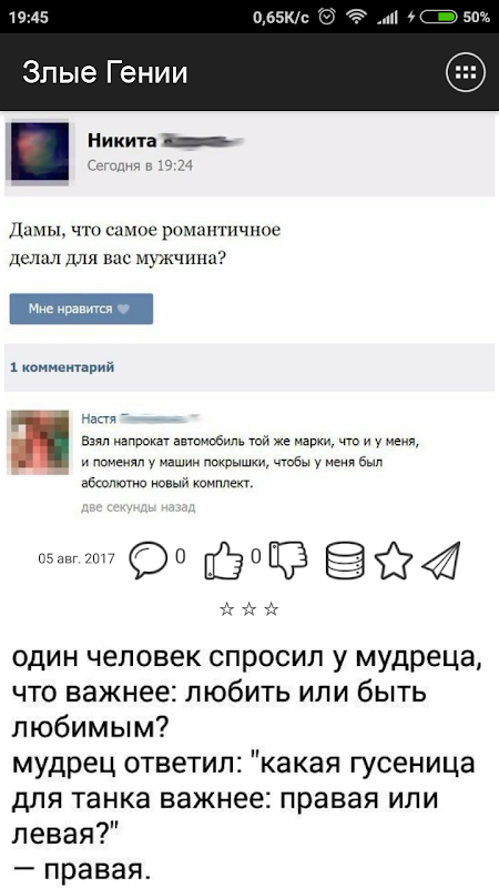 Мы поможем тебе развеселиться и посмеяться! Прикольные переписки из социальных сетей и забавными картинками. Ты сможешь смотреть весёлые картинки и смеяться над жизненными ситуациями. Остроумные шутки и тонкий юмор. Смешные шутки и прикольные смски, забавные пранки и смешные ситуации. 👍