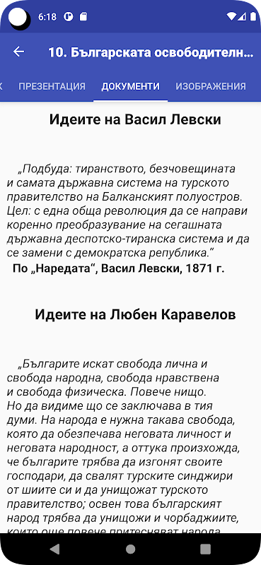Application on history and civilizations for the 7th grade - Bulgarian history from the Renaissance to the beginning of the XXI century.