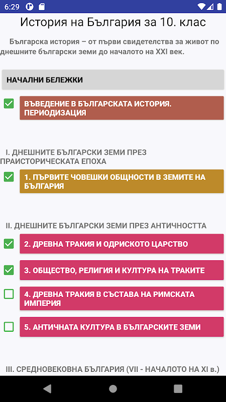 The main resources do not need an internet connection. It is intended for students and teachers (the topics are in accordance with the new history textbooks for the 10th grade), parents and everyone who wants to learn more about Bulgarian history.