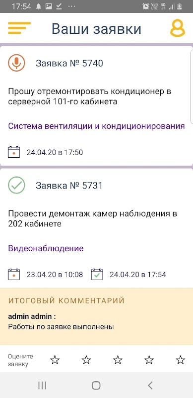 - Отслеживайте статус выполнения заявок в реальном времени;