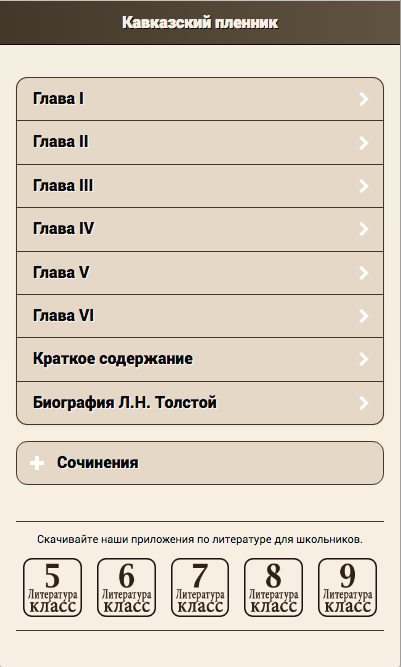 "Кавказский пленник" Л Н Толстой, включены анализ произведения, школьные сочинения, характеристики, биография автора.