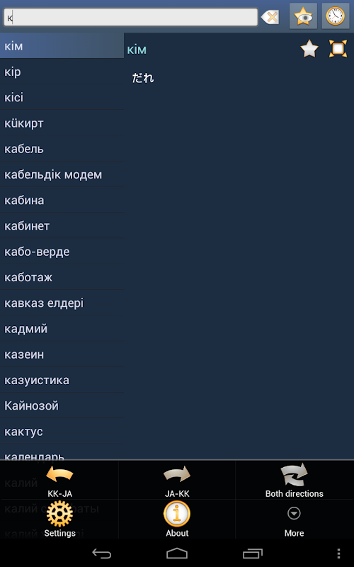 This is Kazakh Japanese Dictionary - カザフ-日本の そして 日本の-カザフ 辞書 (Японско-Казахский и Казахско-Японский Словарь). The Application is OFFLINE and does not need the internet connection.