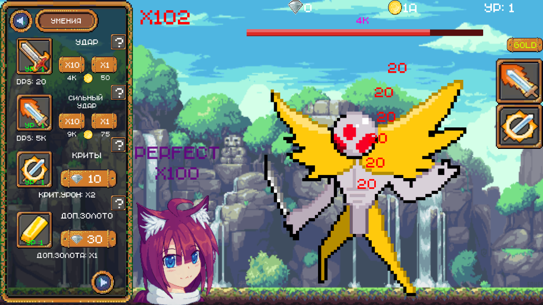 Simple clicker where you need to improve the warriors and defeat monsters.