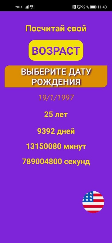 Разложите свой возраст "по полочкам" - на секунды, минуты и часы! Внутри приложения вас ждет: