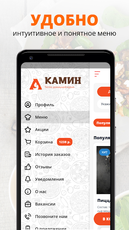 The Kamin | Tyumen app is a convenient way to order food to your home or office! We prepare our dishes from high-quality fresh ingredients and deliver food quickly and carefully.