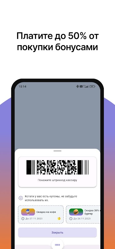 Bonuses for every purchase: Save and spend bonuses in any of our stores and coffee shops. Make purchases by paying up to 50% of their cost with bonuses!