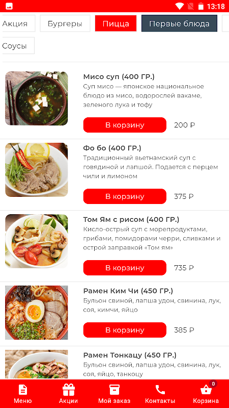 The official mobile application provides an opportunity to place an order for delivery or pickup at the Kasikomi cafe in Komsomolsk-on-Amur