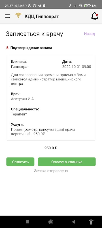 CDC "Hippocrates" (Korenovsk): making an appointment, payment for services, call history