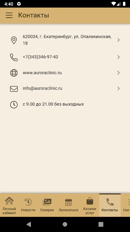 Мобильное приложение - это Ваш личный кабинет в клинике красоты "AURORA", теперь Вы сможете сами: