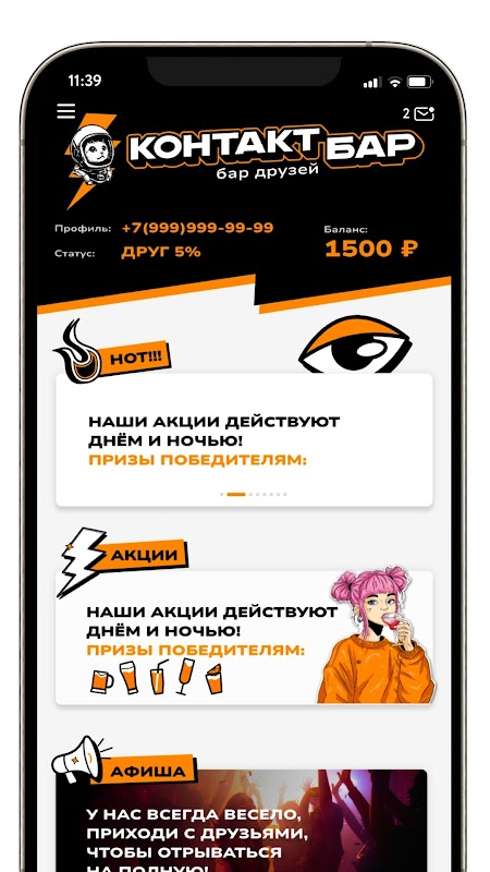 Contact Bar is a modern, fashionable, dynamic network of establishments for young people with affordable prices.