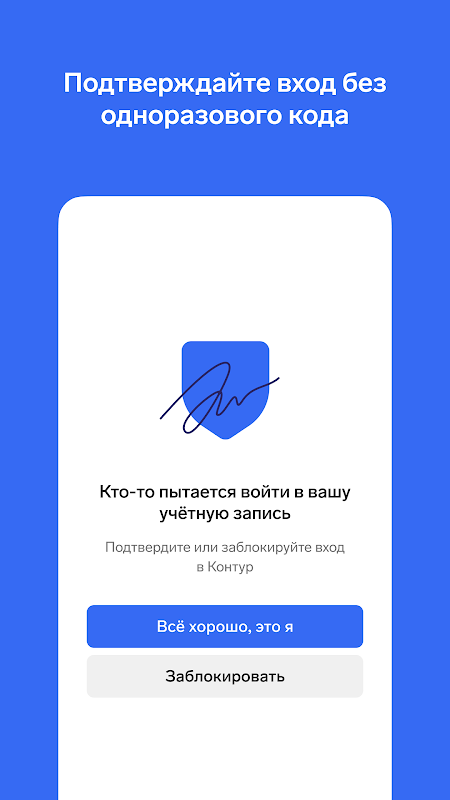 Kontur.Connect protects personal and corporate data through two-factor authentication (2FA). Even if an intruder finds out the login and password of the login account, they will not be able to connect to services and resources without the second authentication factor.