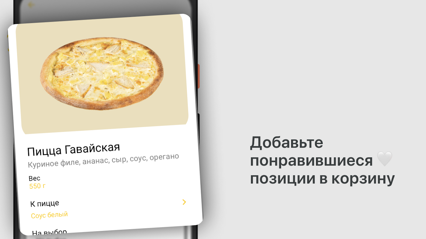 How to place an order in the “Coordinates” application: select the items you like from the menu, add them to the basket and go to the checkout screen (by clicking on the basket icon).
