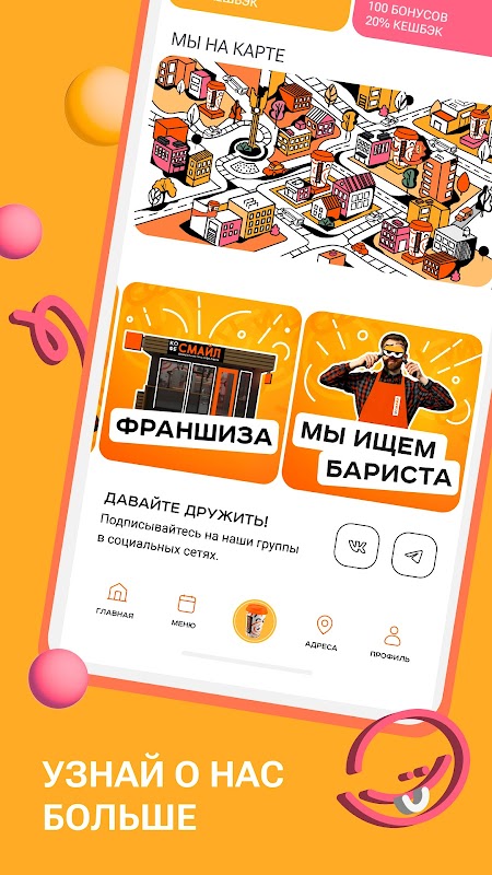 Register in the application, receive bonus points and increased cashback, participate in promotions and keep up with new products in the COFFEE SMILE loyalty program.